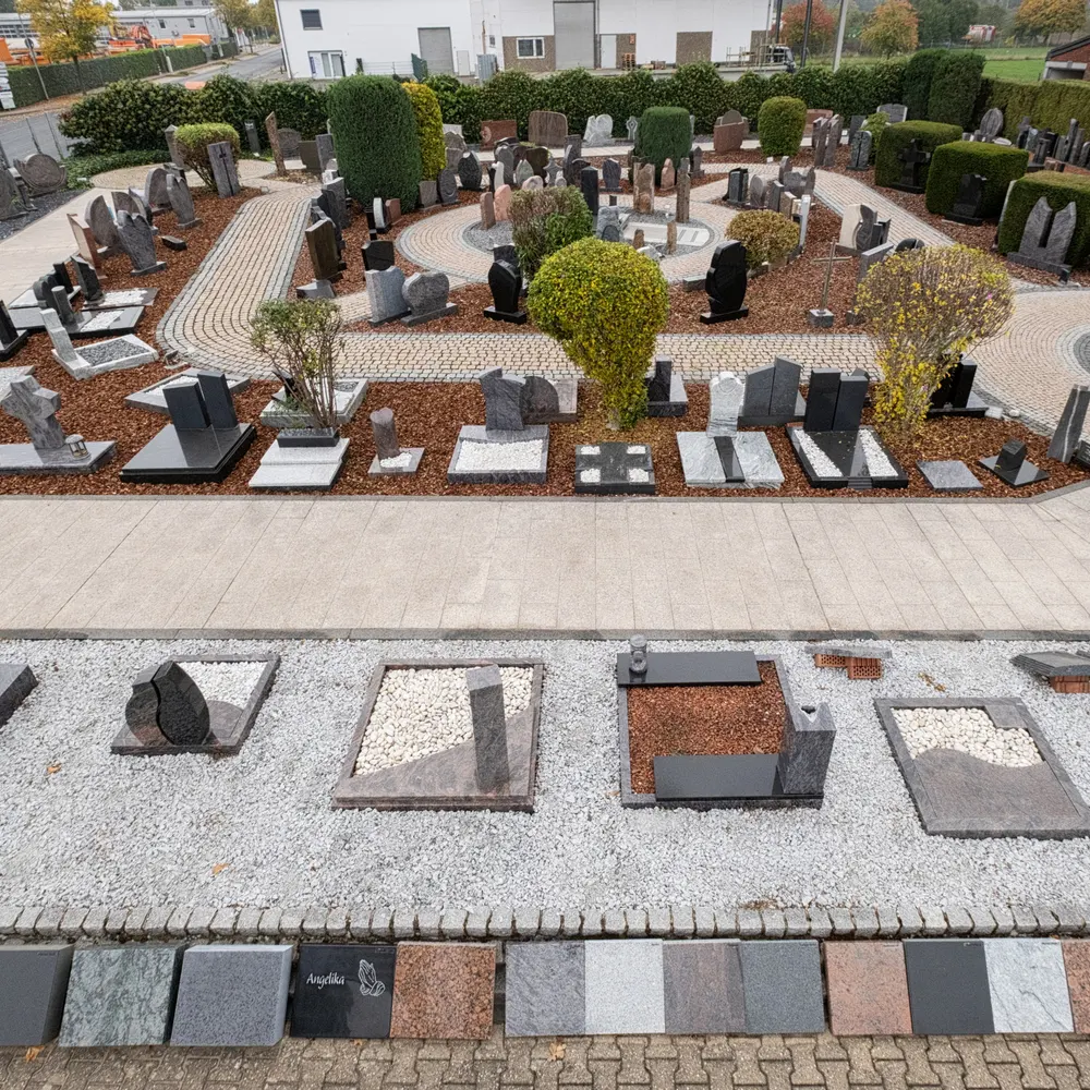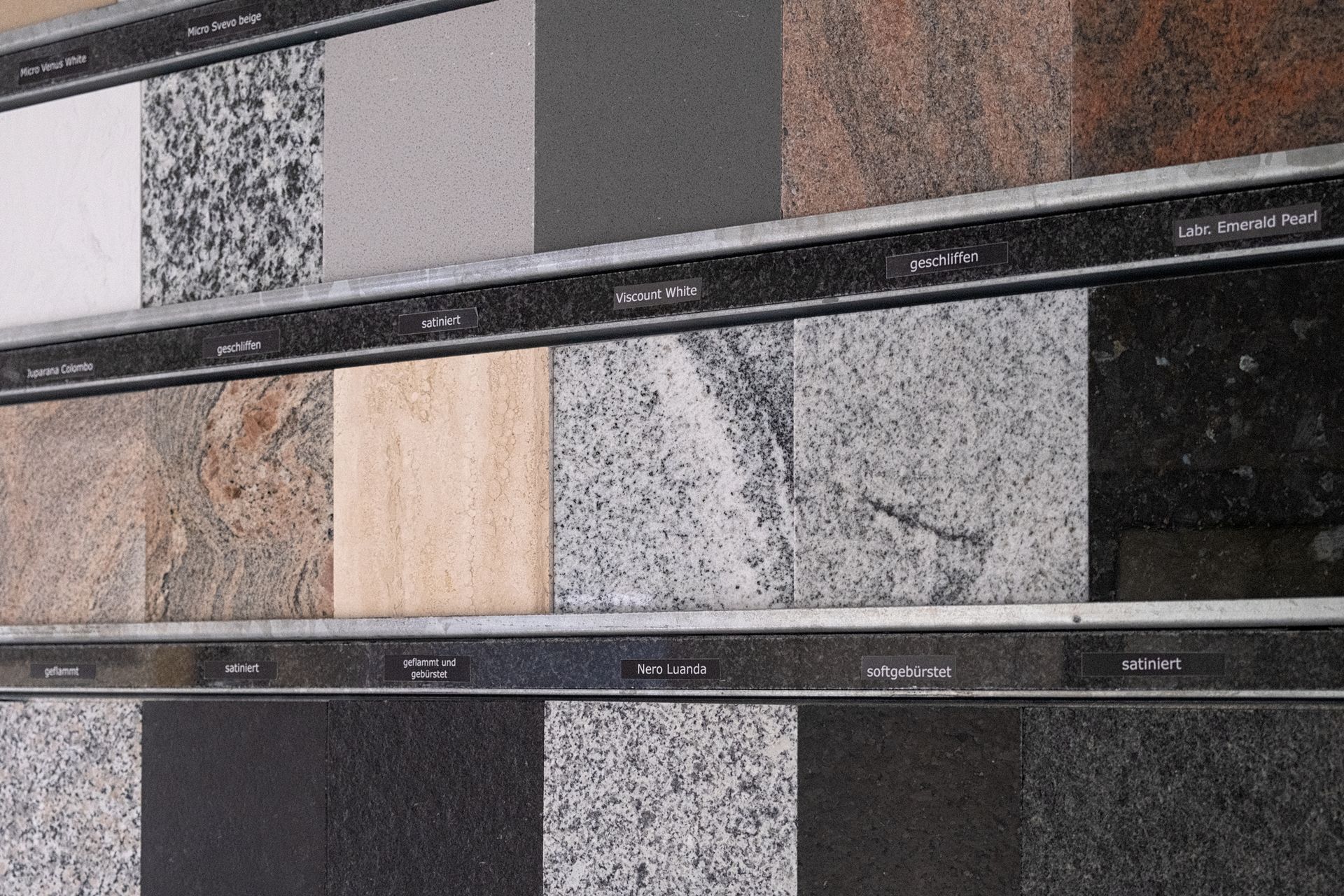 In unserer großzügigen Ausstellung können Sie die Schönheit und Vielfalt des Natursteins hautnah erleben. Wir zeigen eine breite Auswahl an Grabmalen in unterschiedlichen Formen, Materialien und Oberflächen sowie zahlreiche Naturstein-Musterplatten für Küche, Bad, Treppen und Außenbereiche.