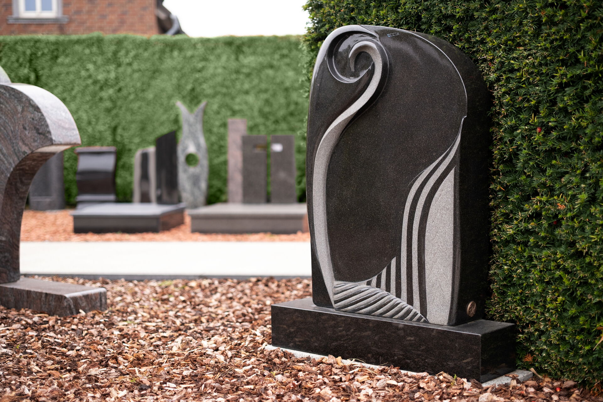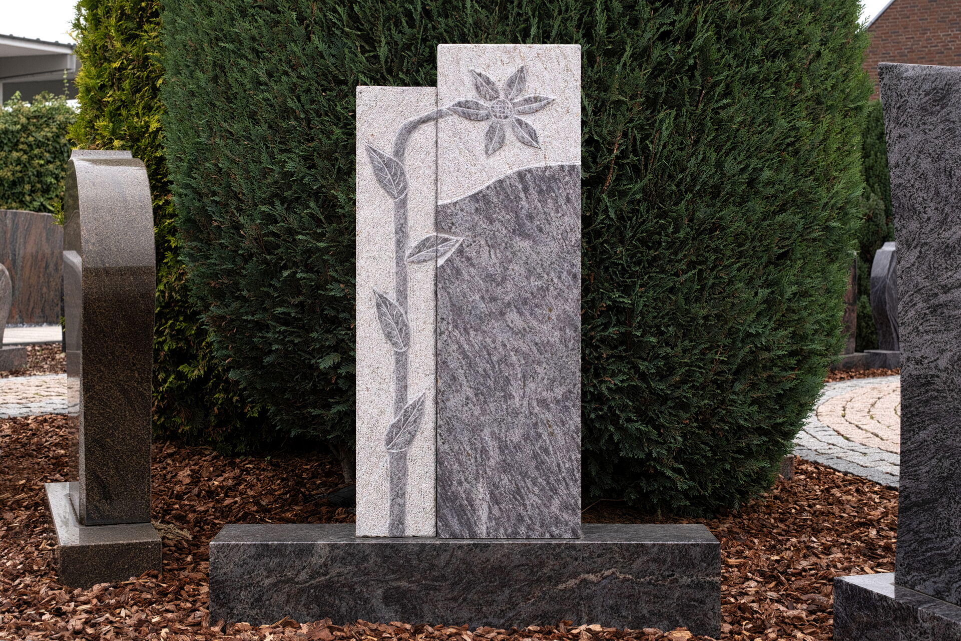 Auf unserem weitläufigen Ausstellungsgelände präsentieren wir Ihnen eine der größten Grabmalausstellungen der Region. Hier können Sie die Wirkung verschiedener Steine im Tageslicht sehen, Details aus nächster Nähe betrachten und spüren, welche Gestaltung zu Ihren Vorstellungen passt. Ob zeitlos klassisch, modern reduziert oder fein ornamentiert – jedes Stück zeigt die besondere Handschrift unseres Handwerks.